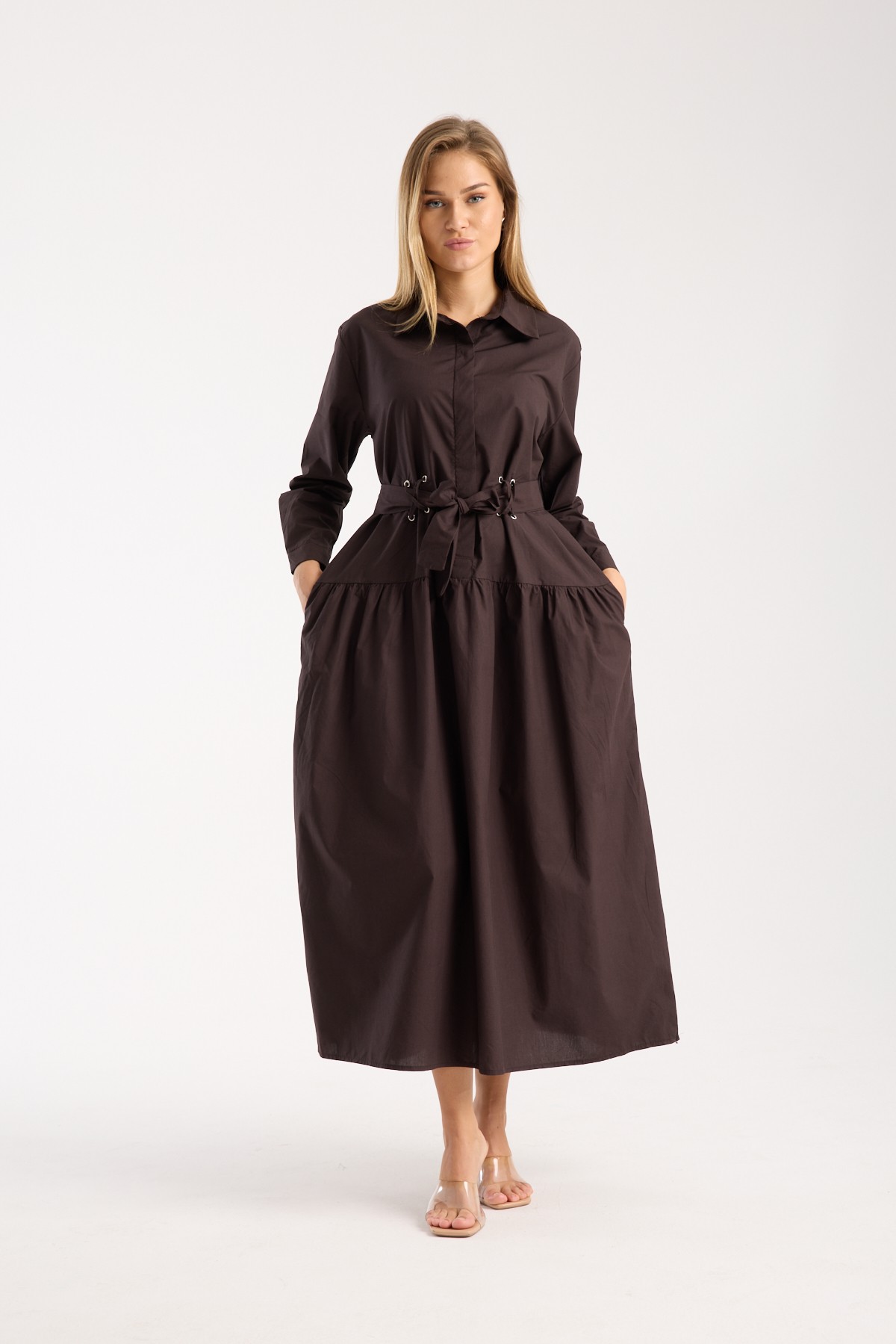 Bağcıklı Elbise Kahverengi