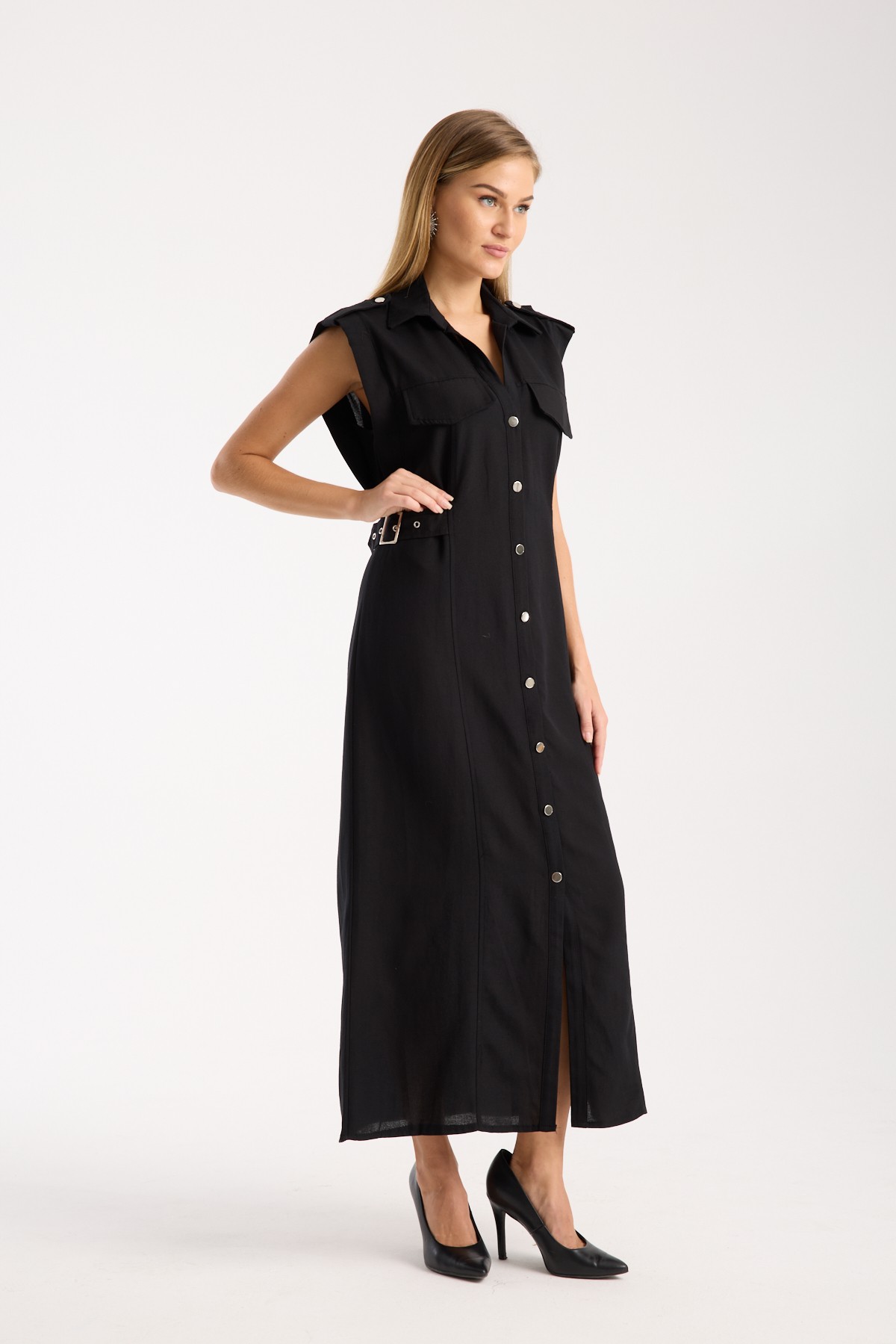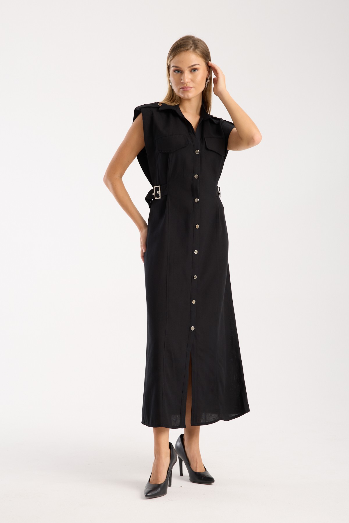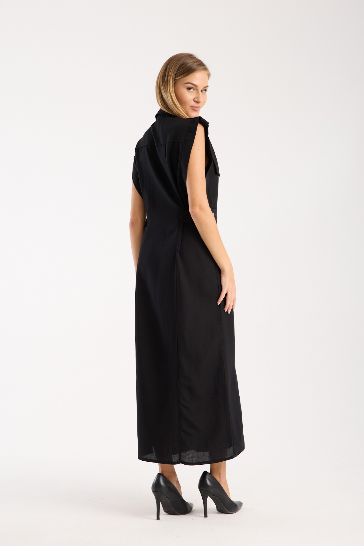 Elegans ve rahatlığın mükemmel birleşimi olan Düğmeli Keten Elbise, gardırobunuzda yer alması gereken özel parçalardan biridir. Siyah rengiyle, şıklığı ve zarafeti bir araya getirirken, aynı zamanda günlük kullanımda da fonksiyonellik sunar.