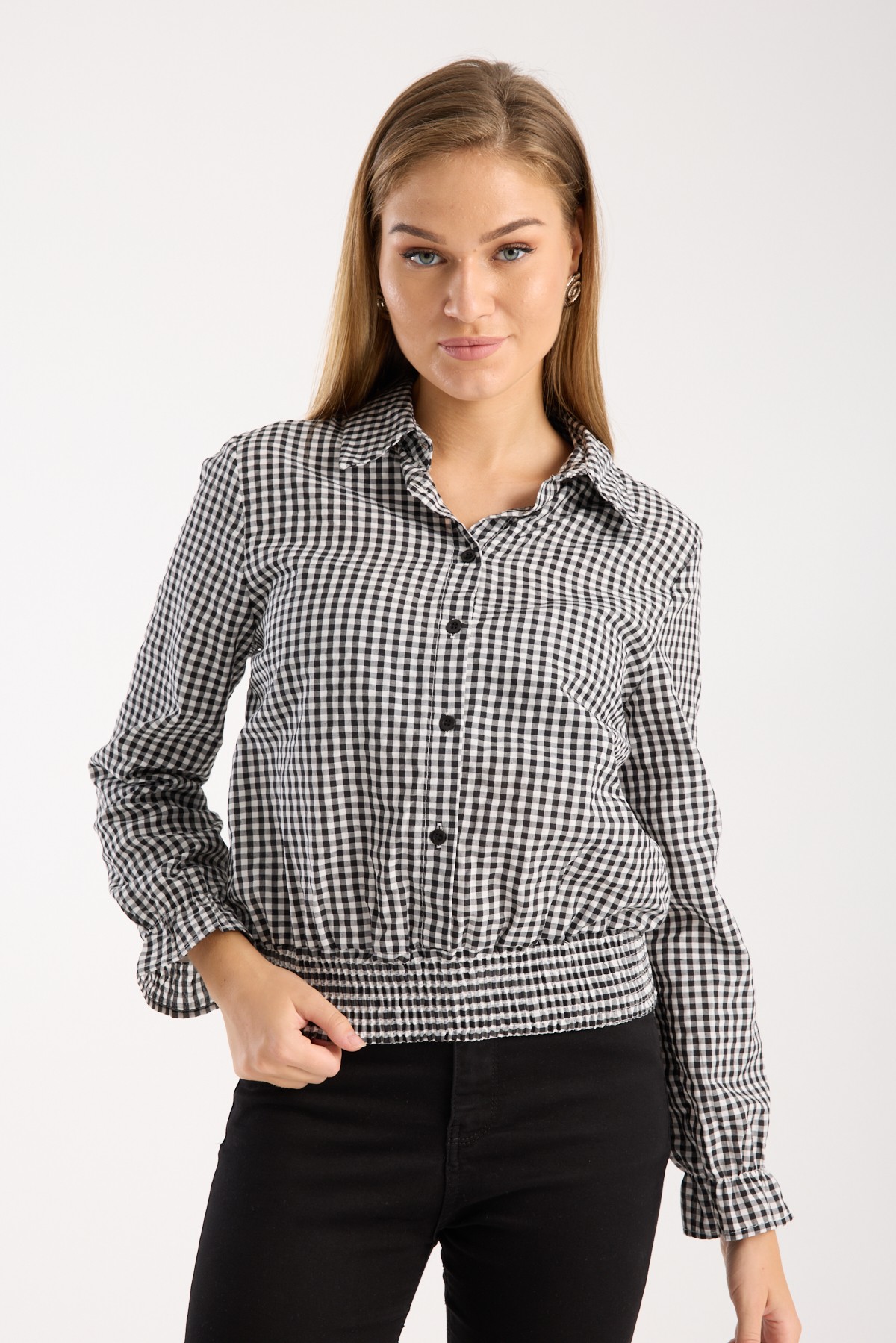 Siyah Beyaz Kareli Gömlek Bluz
