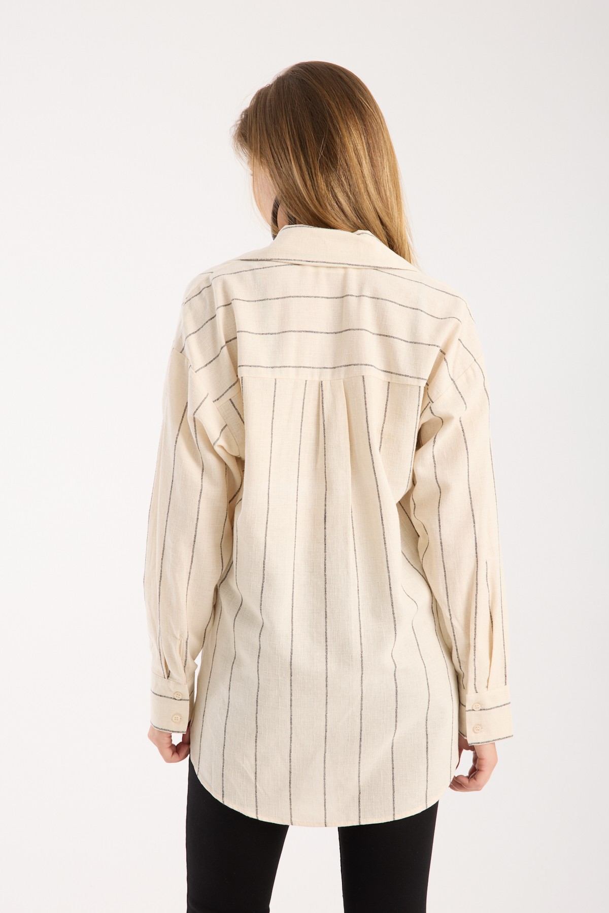 Siyah Çizgili Krem Keten Gömlek, her ortamda şıklık arayanların gözdesi olacak bir parçadır. Hem rahatlığı hem de şıklığı bir arada sunan bu gömlek ile tarzınızı yansıtarak kendinizi her daim özel hissedeceksiniz. Şimdi hemen keşfedin ve modanın keyfini çıkarın!